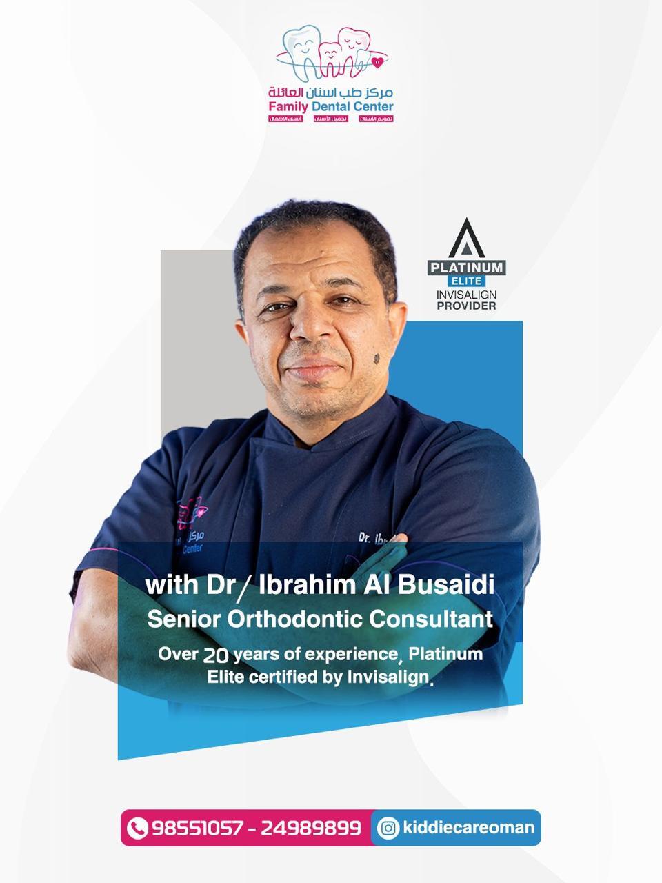 Dr. Ibrahim AlBusaidi is a highly esteemed Senior Consultant in Orthodontics, bringing over two decades of expertise to family dental center.